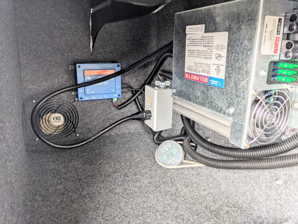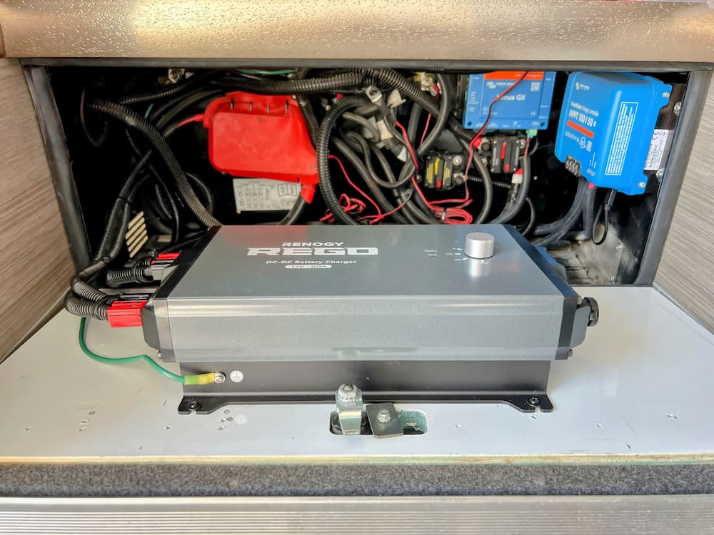 Most of the DC gear in my RV is Victron – the BMS 712, 50 amp solar MPPT controller, and an old Venus to connect to Victron VRM (remote Internet monitoring). I always wanted a Victron Inverter/Charger but I don’t have the space, location, or weight capacity to mount one, so I settled on a […]