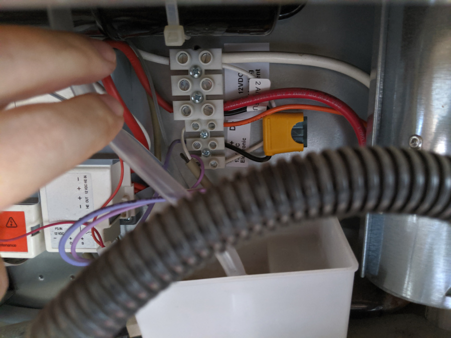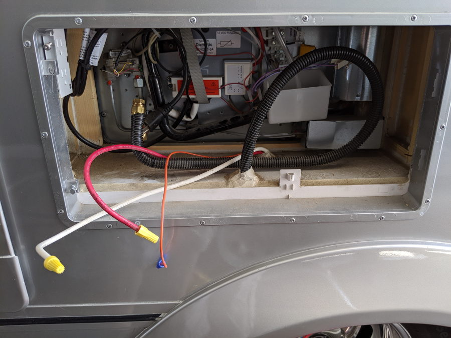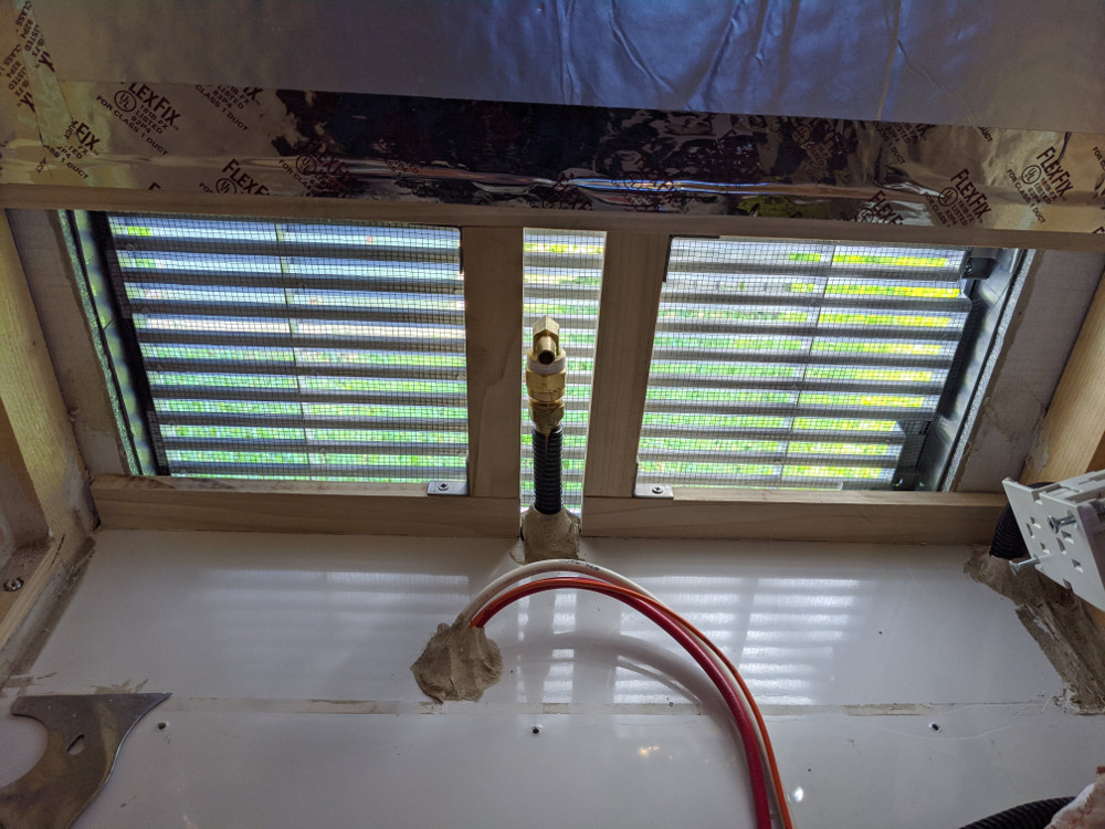 Next, remove the lower external outside Dometic grill to reveal the wiring: