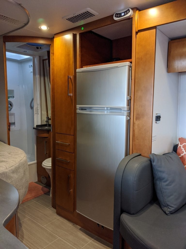 My RV came with an industry standard Dometic refrigerator. I won’t spend a lot of time on the deficiencies as they are well known. The technology has some great advantages. You can run them on propane or electric, and this is probably the main reason they are standard on most rvs. You don’t have to worry about running down your battery.
