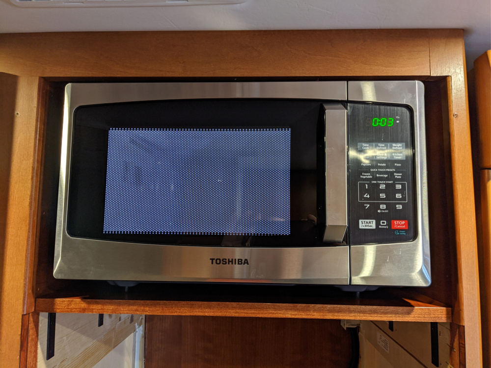 I installed a pair of fans topside, and the switch as pictured further below. I never liked the original microwave because it heated the cabinet excessively, and I suspect this one will too. But I rarely use the microwave, and if we do, its typically to reheat something so for short runs it should be fine.