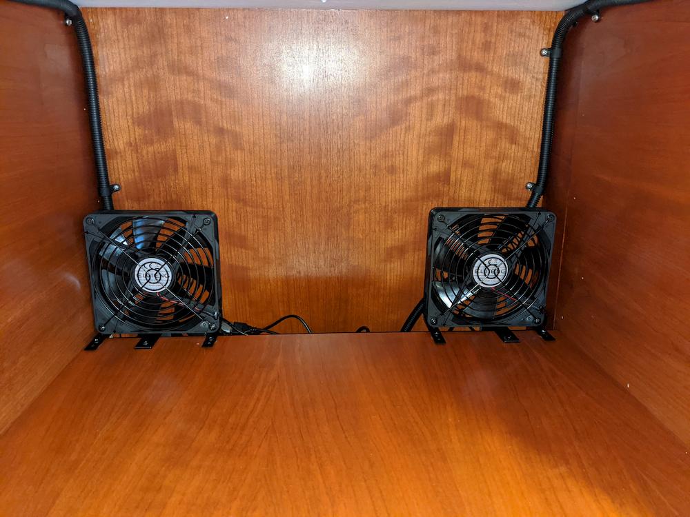 The fans also will be useful when its really hot inside to help clear the air behind the refrigerator. Most 12 volt fans are made for 12 volts, not the 13 or even 14 that I see with Lithium batteries, so instead I used 5 volt fans and a buck converter.