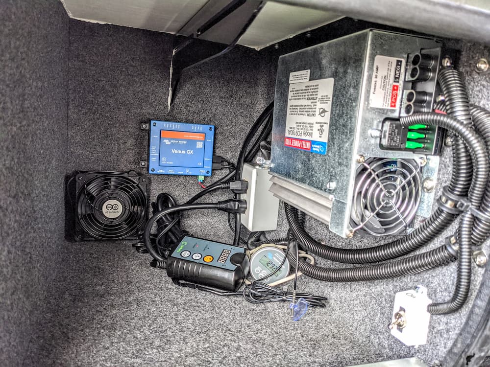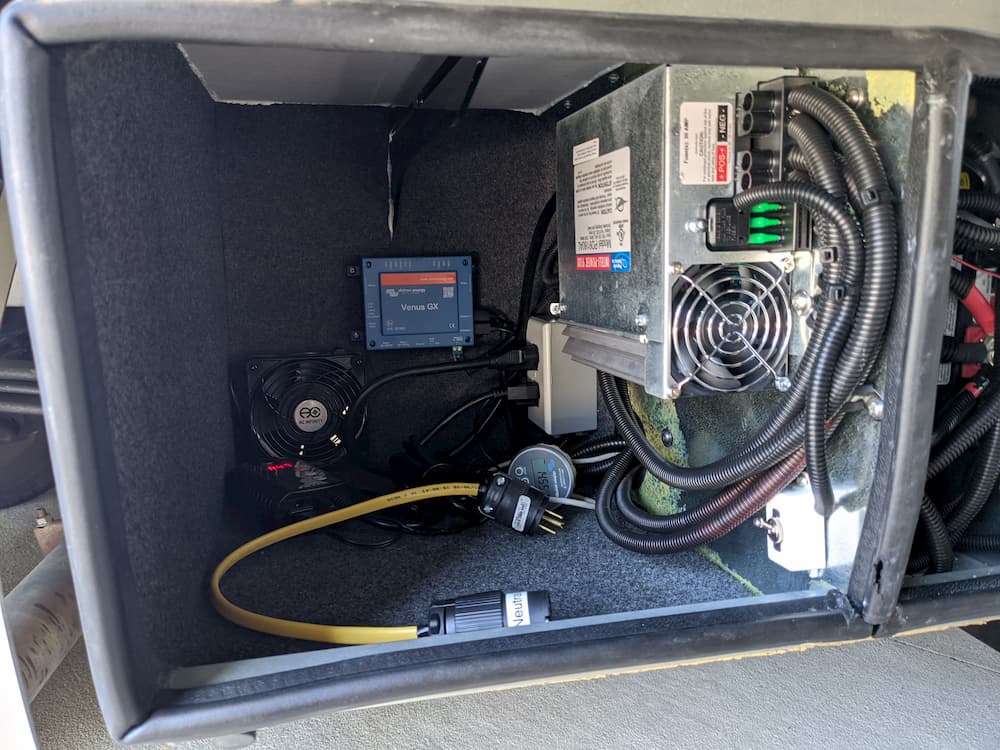 In the final picture at the top of this post you can see how the installation looks. I took advantage of this project to move my Victron Battery Monitor into this compartment and also install a Victron Venus GX which you can see on the back wall.