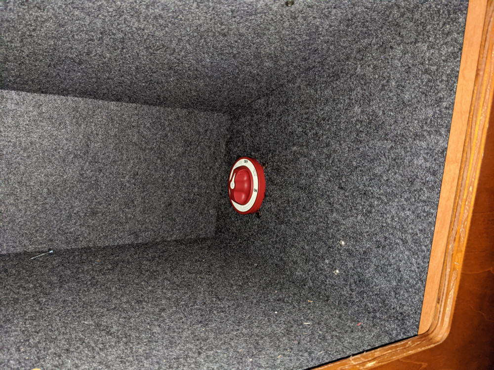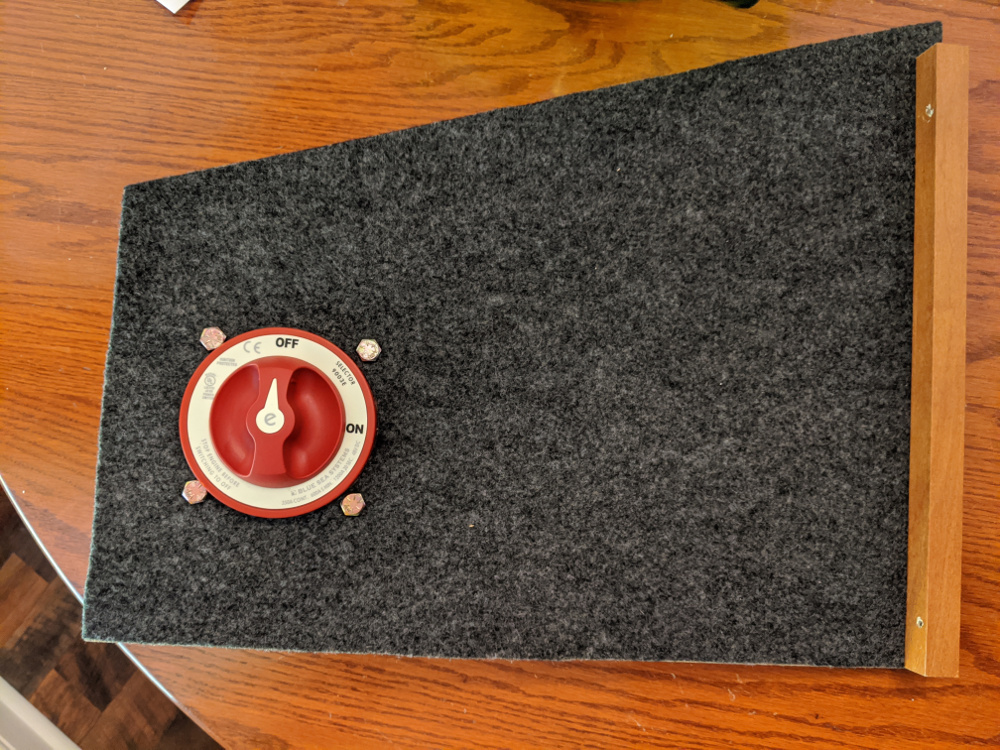 So I removed the side panel of that cabinet and mounted the marine battery switch, which came out like this: