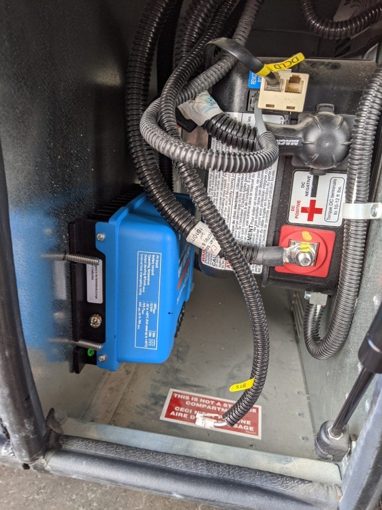 First step is to rip out the goPower solar controller. Its in the most stupid place I can imagine, in the upper cabinet behind the passenger seat. You need a flashlight to read it. Solar controllers are supposed to be placed as close to the batteries as possible, by the way.