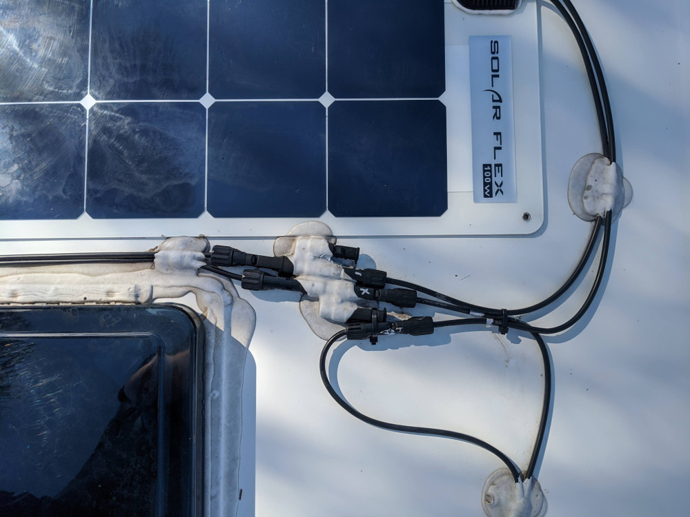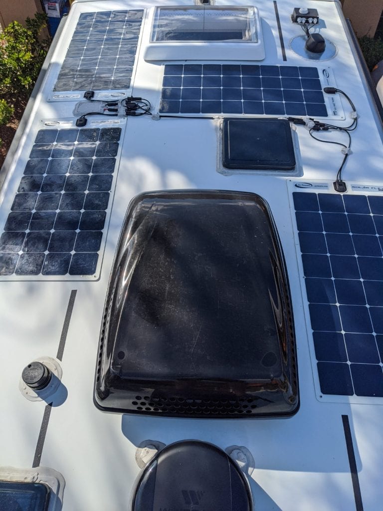 • The GoPower Flex panels, as I learned, are a bit yucky. The biggest problem is that they are glued down to the roof. That creates heat and a limited life, and can be hell on earth to remove.