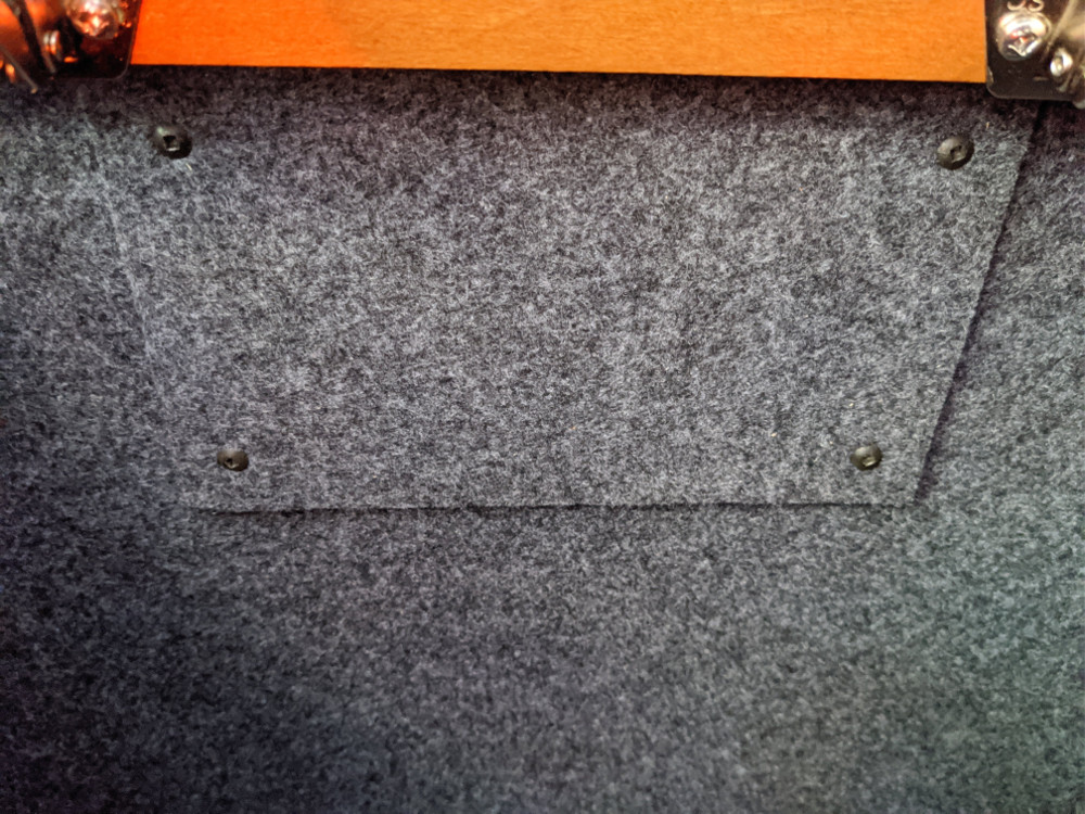 This step is pretty easy. You just remove the controller and cap off the wires for now. Then I removed the panel on the right. I decided to cover the overhead hole where the GoPower was with a piece of 1/8″ wood covered with some felt I bought at a fabric store which matched almost perfectly: