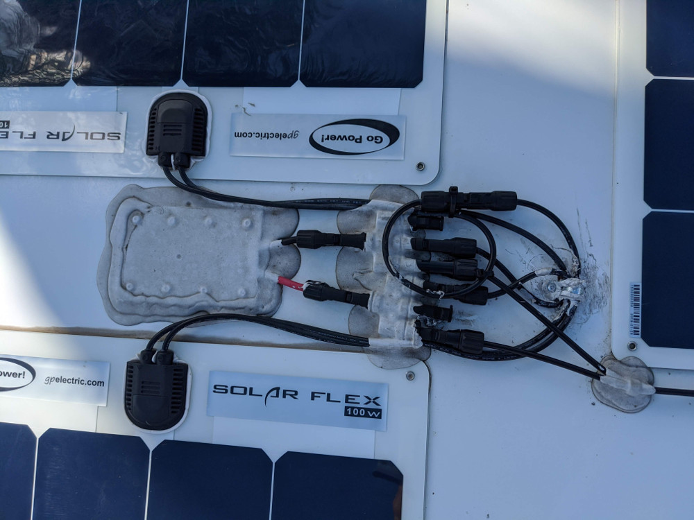I’m left with a slightly sloppy installation. The branch connectors now have unused ports. But it’s good enough, and I plan on replacing my panels with rigid someday anyway, so why bother to redo the wiring.